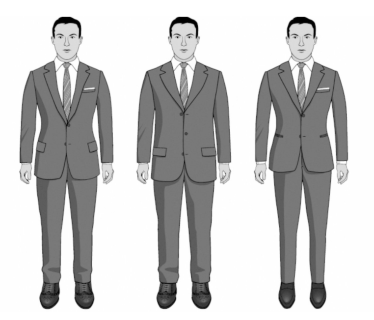 В магазине мы работаем с костюмами по 3м основным видам кроя: